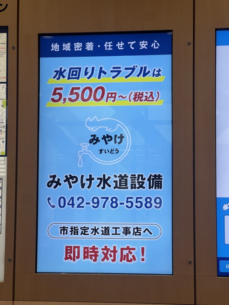 常時色んな会社さんの広告が流れており、画面がタッチパネル式になっているので画面をタッチすればそこの会社の詳細が表示される様です。